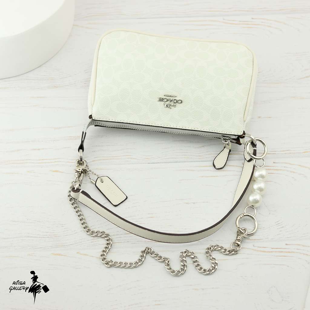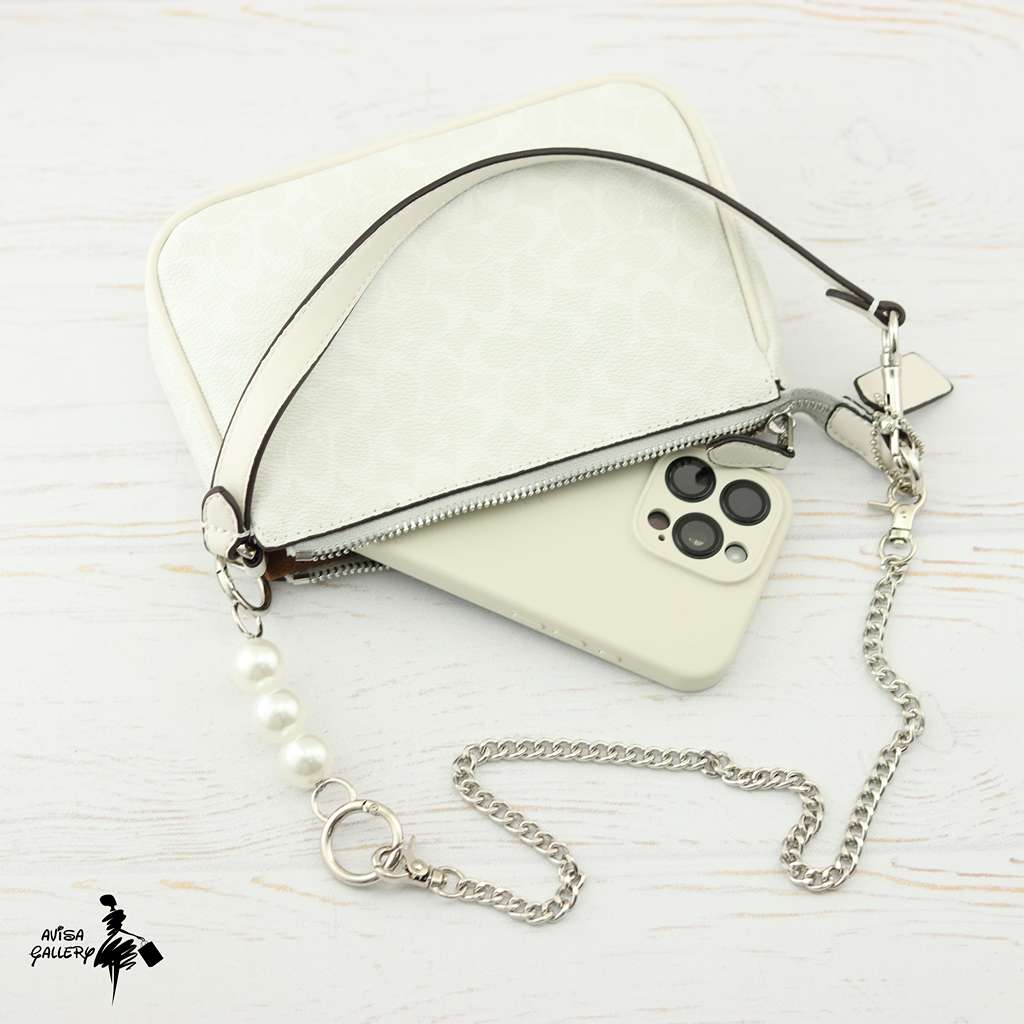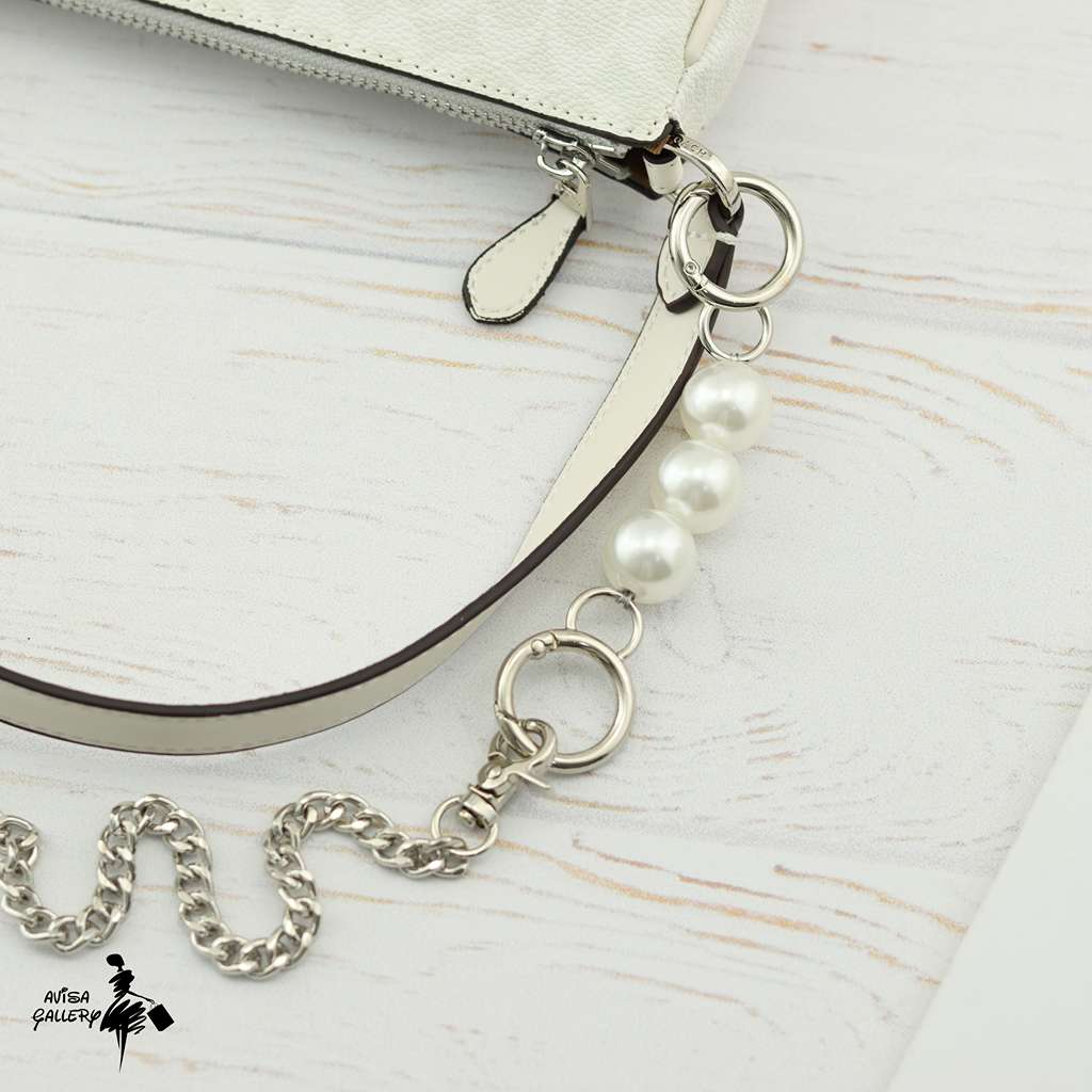 - مدل و تعداد بند : دارای بند دوشی از جنس چرم مصنوعی و یک بند دوشی زنجیری که یک بند 12 cm دیگر هم داره که به هر دو بند میشه متصل کرد با این بند مرواریدی طول بند دوشی افزایش پیدا میکنه