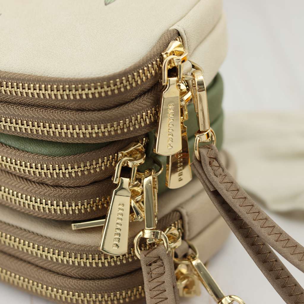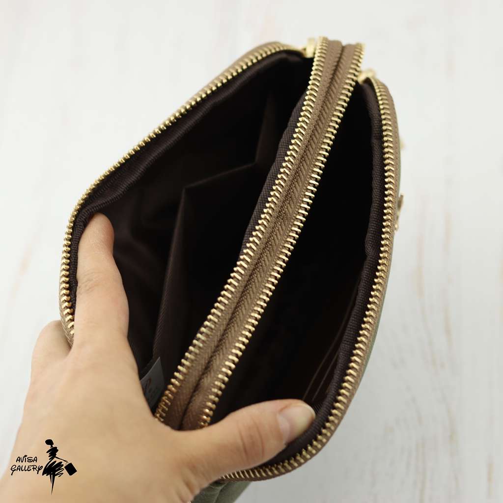 - مدل و تعداد جیب : دوخانه زیپ دار بالای کیف دارای یک جیب داخلی و همچنین دارای سه عدد جای کارت به همراه بند دستی