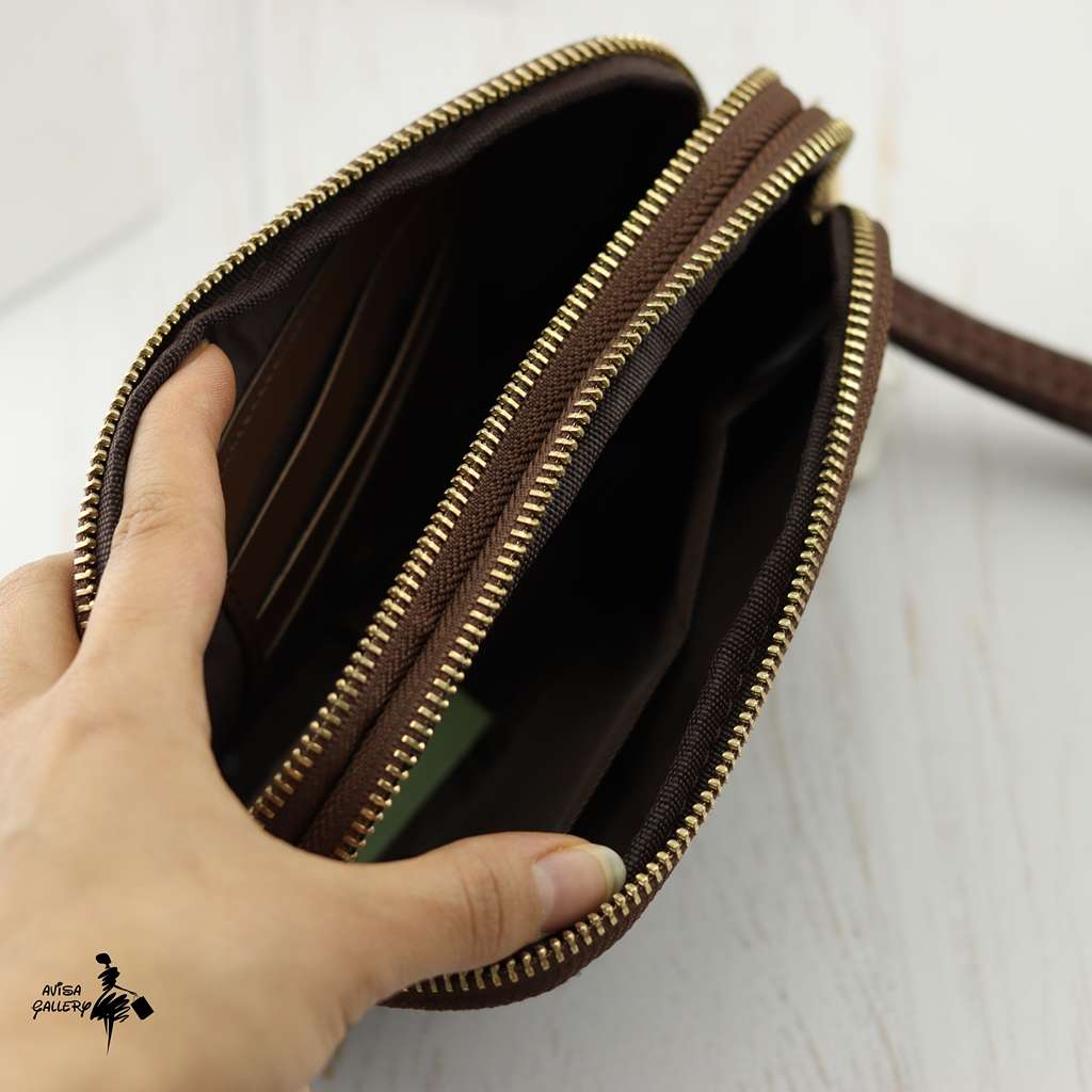 - مدل و تعداد جیب : دوخانه زیپ دار بالای کیف دارای یک جیب داخلی و همچنین دارای سه عدد جای کارت به همراه بند دستی