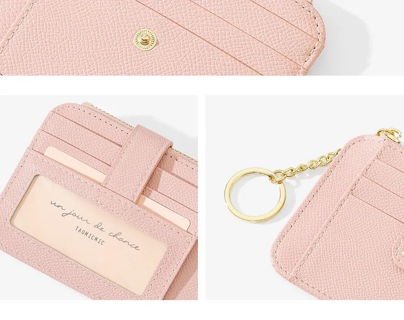 - مدل و تعداد جیب : یک محفظه زیپ دار قسمت بالا جاکارتی و دو خانه برای جاکارت در قسمت جلو و دو خانه برای کارت و جای عکس در قسمت پشت و همچنین دارای آویز جا کلیدی